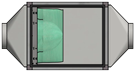 Das leicht zu desinfizierende besteht wahlweise aus pulverbeschichtetem Stahlblech oder Edelstahl 1.4301. Es bietet über die beiden Einströmzonen Raum für je zwei Filterstufen (ISO ePM1 70% und EN 1822 H14). Zudem erfüllt das Design die Hygieneanforderungen an raumlufttechnische Anlagen gemäß VDI 6022. Die LED-Signalanzeige zeigt den Arbeitszustand und den Beladungs-grad der Filter an.