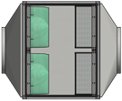 Die beiden regelbaren EC-Lüfter liefern einen Gesamtvolumenstrom bis zu 6000 m³/h mit einer Filterleistung >99,995% @ MPPS (most penetrating particle size: ca. 0,1 - 0,3µm). Das bedeutet, dass Partikel <0,1 µm und >0,3µm mit weit höheren Wirkungsgraden abgeschieden werden. Dies schließt auch Sars-Cov-2 Viren ein. Das System bietet vier verschließbare Anschlüsse Ø315 mm mit Jacob Bördel für die Luftverteilung.
