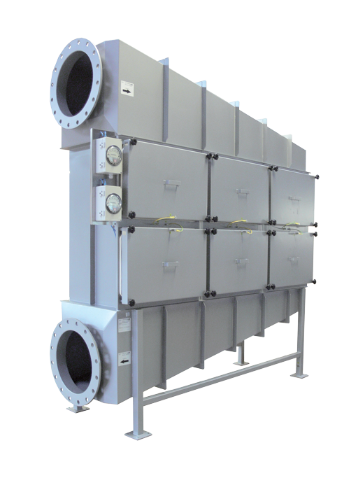 HS-S041 filterhousings are manufactured from airtight welded stainless steel. Filters are fixed by a stainless steel two-lever entralised pressure system and leaf springs. Optional equipment i.e.: a seal leak proof grove, aluminium twin grooved service board for safe change (Bi-Bo, bag-in-bag-out), adapter housings or flanges and or foot pedestal. Multistage housings are also available.